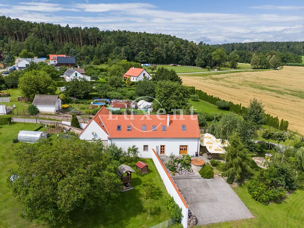 Nabízíme ke koupi stylové venkovské sídlo v Kvítkovicích – 10 km od Českých Budějovic – v krajině lesů a rybníků na hranici CHKO Blanský les. Možnosti využití jsou variabilní – penzion, investice pro firemní využití, chalupa, vícegenerační bydlení s možností pronájmu části domu apod. Předností domu je stylová tradiční architektura, kvalitní stavba, skvělé dispozice, moderní technologie a nízké náklady provozu. Celková užitná plocha činí 580 m². Pozemek o rozloze 2.913 m² nabízí přitažlivý výhled do krajiny přes zelené louky až na blízké rybníky. Energetická náročnost kat. B – velmi úsporná. Součástí nabídky je také unikátní stavební povolení pro další objekt k výstavbě.