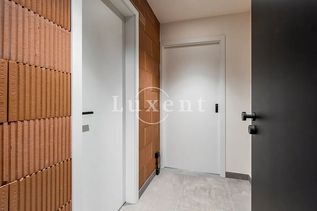 Originálně řešená dispozice designového bytu tvoří vstupní předsíň, vzdušný obývací pokoj s kuchyňským koutem a barovým pultem, který odděluje kuchyň od obývacího pokoje. Součástí obývacího pokoje je i nápaditě začleněný prostor na spaní s úložným místem. Dále prostorná koupelna se sprchovým koutem walk-in, umyvadlem a toaletou. Kuchyň je vybavená veškerými moderními spotřebiči Siemens, pračkou, ale také nádobím.