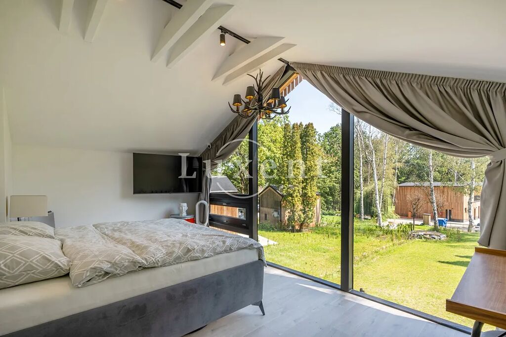 Chata je provedena v moderním, vkusně minimalistickém pojetí, které umožňuje nízkonákladové bydlení s minimálními nároky na údržbu. Materiálové řešení kombinuje dřevěný fasádní obklad, velkoformátová prosklení na čelních fasádách a střešní krytinu z bonnského šindele. Střídmý design čerpá z přírodních materiálů a navazuje na okolní přírodu. Velkoformátová čelní skla umožňují dokonalé prosvětlení vnitřních prostor a otevřené výhledy do okolí, což rezidentům přináší uklidňující pocit, že i doma jsou přirozenou součástí přírody.
