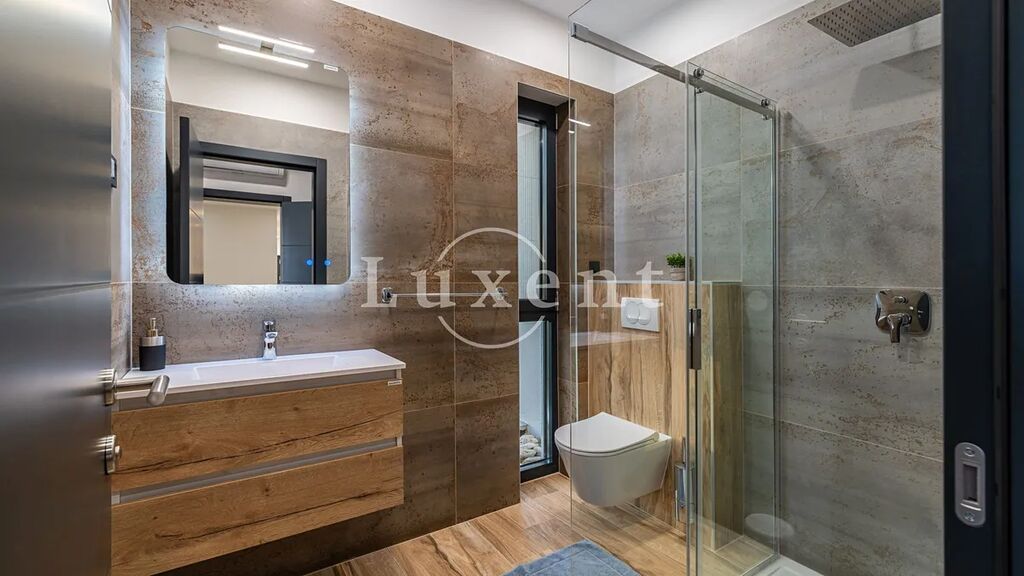 Druhé patro vily je věnováno třem luxusním ložnicím, z nichž každá má vlastní koupelnu a balkon s nádherným výhledem na moře. Vila je vybavena moderním systémem vytápění a chlazení s tepelným čerpadlem a podlahovým vytápěním, které zajišťuje optimální komfort v každém ročním období.