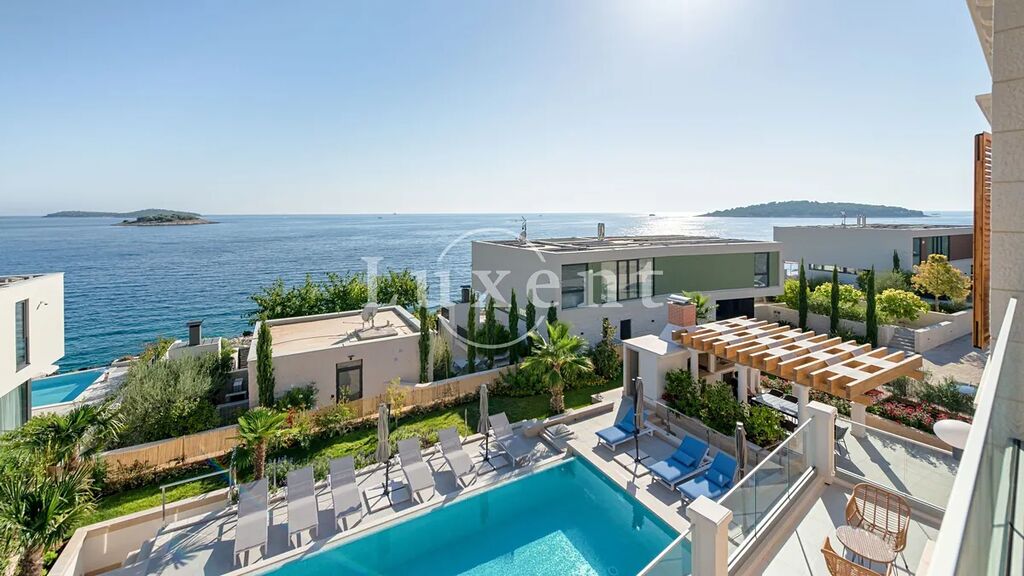 Na prodej je nově postavená kamenná vila s přepadovým bazénem, která se nachází jen 50 metrů od moře v rezidenční části Rogoznice, obklopena luxusními nově postavenými vilami. Celá vnější fasáda vily je vyrobena z 3 druhů ručně tesaného kamene, díla nejlepších kameníků z ostrova Brač, což vile dodává jedinečný a tradiční vzhled.