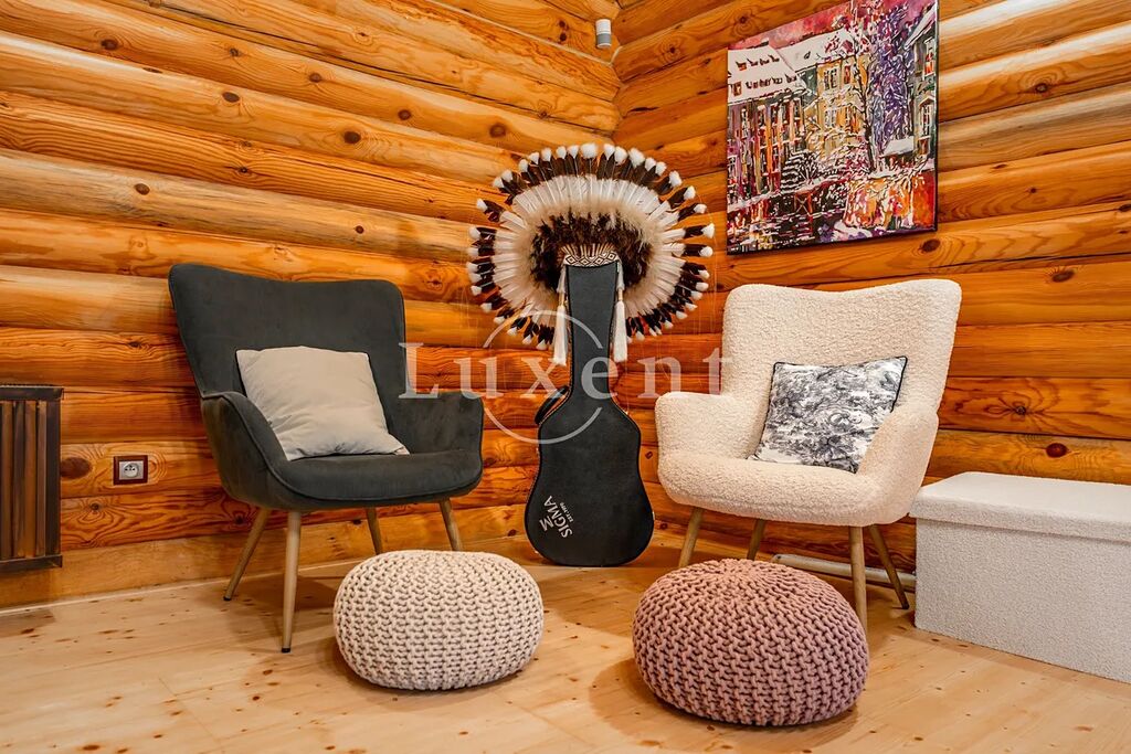 Srub byl postaven v r. 2010 erudovanou firmou a je evidován jako rodinný rekreační objekt. Je usazen uprostřed pozemku ve vyvýšené poloze, což mu dodává vznešený ráz a rozhled ve velmi příjemné okolní krajině. Všechny použité materiály jsou čistě přírodní, z masivního dřeva včetně kuchyně a nábytku. Promyšlená odborně založená a udržovaná zahrada se vzácnými dřevinami a vzrostlými stromy pak nabízí řadu zákoutí s vlastní atmosférou – terasy kolem domu s posezením pro venkovní stolování, špičkovou vířivku, útočiště pod stromy s houpací sítí nebo designovou saunu s posezením, ochlazovací kádí a rustikální sprchou. V intimním prostoru zahrady za domem je kamenná terasa s posezením, grilem a plně vybavenou venkovní kuchyní.