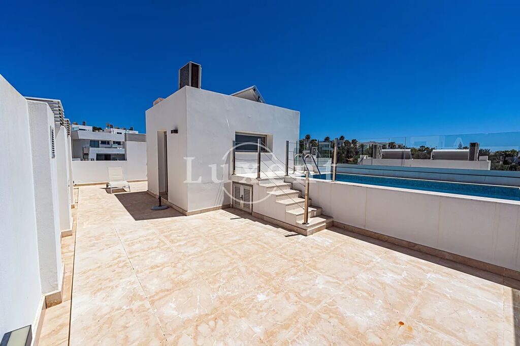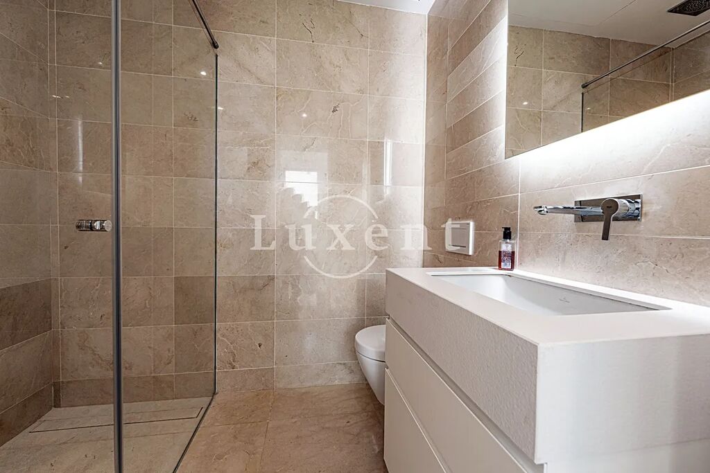 K vybavení domu patří moderní technologie jako aerotermální systém, klimatizace, vyhřívané podlahy a video interkom. K dispozici jsou také dvě garážová stání. Rezidenční komplex nabízí krásně upravené zahrady, dva velké bazény, dětský bazén a společné hřiště, což zajišťuje pohodlné a bezpečné bydlení.