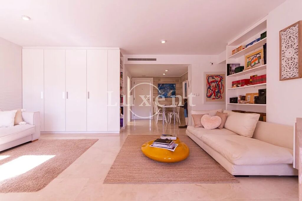 Apartmán byl kompletně zrekonstruován za použití vysoce kvalitních materiálů a nabízí prostorný obývací pokoj s přístupem na velkou terasu o ploše více než 40 m2, která poskytuje krásný výhled na moře a bazén. Moderní interiér disponuje plně vybavenou kuchyní, dvěma ložnicemi a dvěma koupelnami. Hlavní ložnice disponuje vlastní koupelnou a šatnou, přičemž je zde i možnost přestavby, která by umožnila vytvořit třetí ložnici.