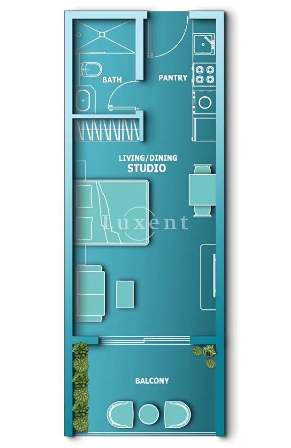 Apartmán má velký balkon, který vám umožní objevit dokonalou oázu nad městem. V projektu se klade velký důraz na kvalitu a design. Interiér je nadčasově zařízený, včetně kuchyně. Budoucí majitelé se mohou těšit na fitness a wellness centrum. Rezidentům je k dispozici komunitní park, meditační prostory, sky lounge bar, prémiový business salonek a coworkingový prostor. K apartmánu náleží i parkovací stání.