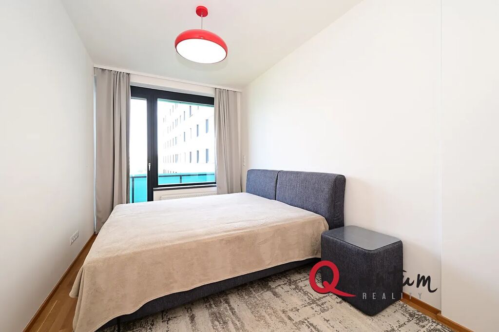 Tento byt se nachází ve 4. nadzemním podlaží novostavby a jeho podlahová plocha činí 50 m2. Byt je vybaven moderním nábytkem a spotřebiči, které splní všechny vaše požadavky na pohodlné bydlení. Prostorný obývací pokoj. Kuchyňská linka disponuje myčkou, lednicí, mrazákem, indukční varnou deskou, elektrickou troubou a digestoří. Ložnice je zařízena pohodlnou postelí a šatní skříní. Moderní koupelna nabízí vanu, toaletu a pračku. Dále se nachází v bytě prostorná komora, kterou můžete využít jako šatnu. Byt je také vybaven venkovními žaluziemi, které poskytují optimální regulaci světla a soukromí. Lodžie je průchozí jak z obývacího pokoje, tak i z ložnice.