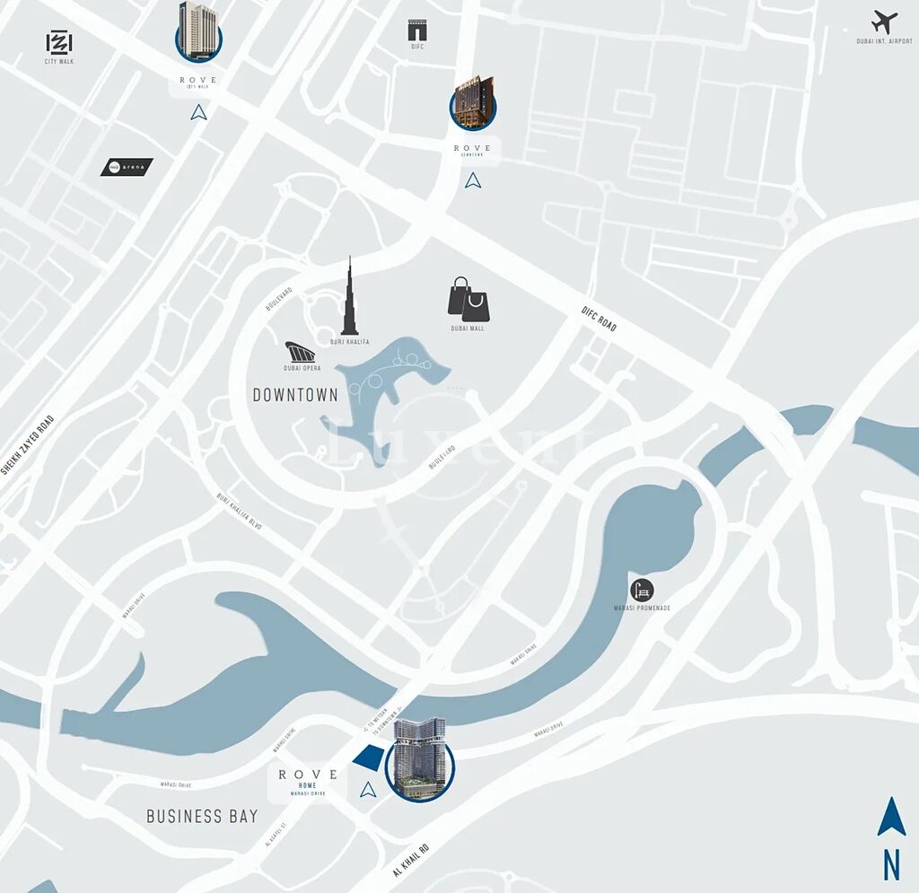 Strategické umístění projektu v bezprostřední blízkosti centra města umožňuje snadný přístup k nejvyhledávanějším atrakcím Dubaje. Za pouhých 10 minut jízdy se dostanete k Burj Khalifa a přilehlým fontánám, 8 minut do Dubai Mall a 11 minut cesty k Dubajské opeře. Za 15 minut dojedete na mezinárodní letiště v Dubaji.