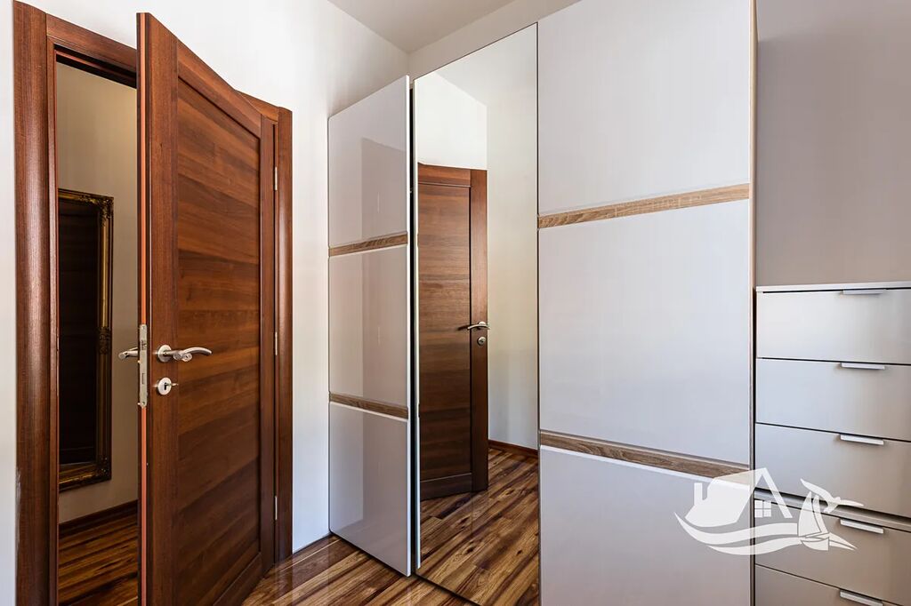 Interiér je navržen s důrazem na prostor a komfort. Najdete zde dvě prostorné ložnice, světlý obývací pokoj, moderně vybavenou kuchyň a koupelnu. Velká okna zajišťují dostatek denního světla a otevírají výhled na mořský horizont, který se stane přirozenou kulisou vašeho každodenního života.