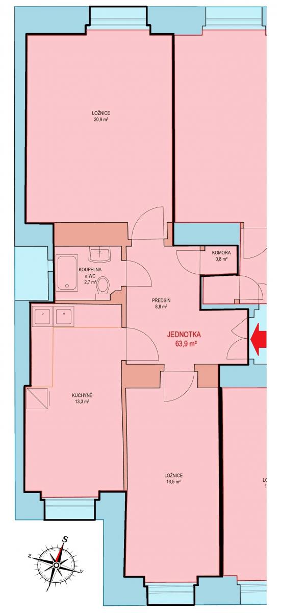 Nabízíme k prodeji byt v osobním vlastnictví o dispozici 2+1 s příslušenstvím a výměře 63,9 m2 (dle nař. vlády se započtením vnitřních příček a zabudovaných předmětů) ve 4. nadzemním podlaží cihlového domu v ulici Žerotínova, městské části Žižkov.