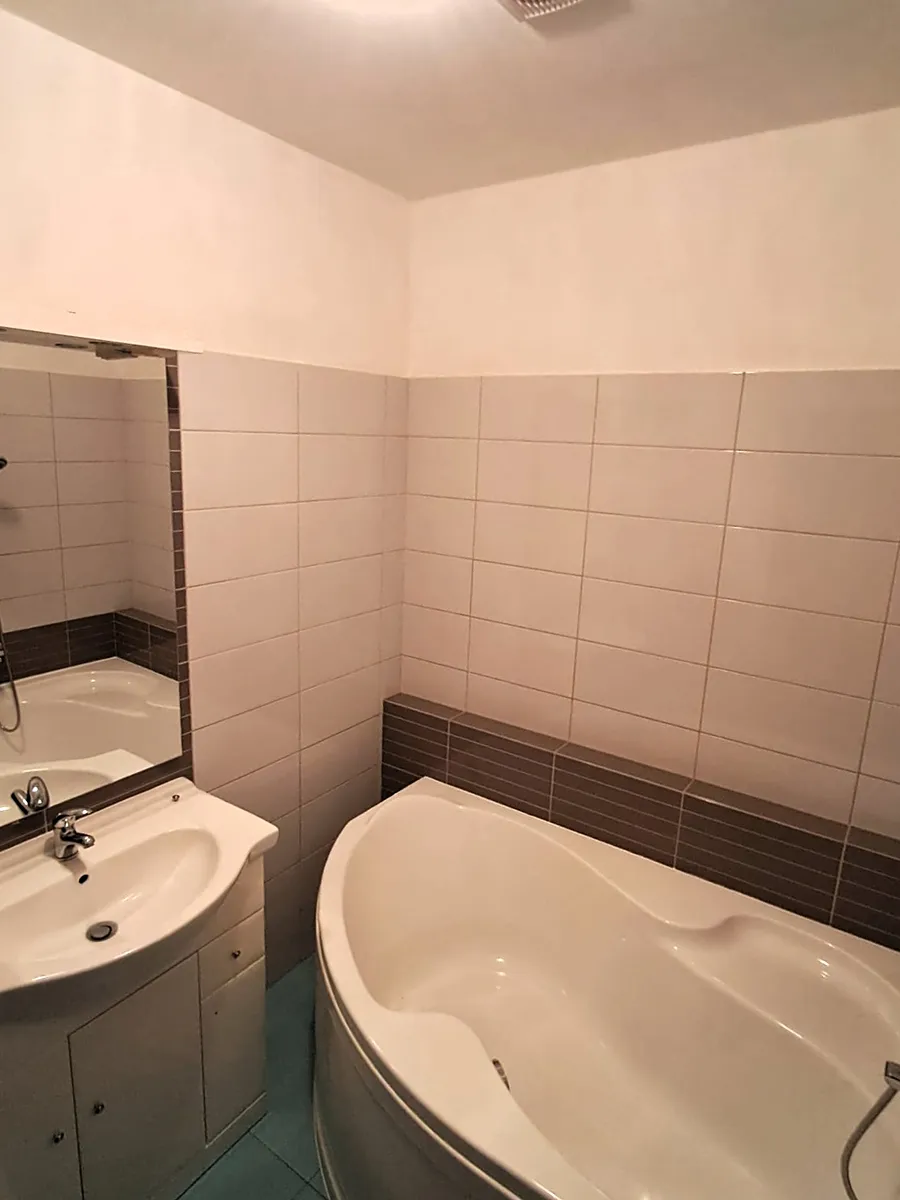 Byt o velikosti 65 m2 se skládá z velkého obývacího pokoje s kuchyňským koutem (myčka, vestavěná trouba, plynový sporák, barový pult, dostatek úložných prostor; lednice může být dodána), ložnice s úložným prostorem a menšího pokoje vhodného jako dětský pokoj či pracovna. V koupelně je velká vana, umyvadlo se skříňkou, otopný žebřík a prostor na pračku. Toaleta je samostatná. Na chodbě se nachází další skříně a úložný prostor. Podlahy jsou plovoucí, v pokoji je koberec. Vytápění je řešeno vlastním plynovým kotlem přes radiátory v místnostech. K dispozici je klimatizace. K bytu náleží zastřešené parkovací místo ve dvoře a praktický kumbál přímo u parkovacího stání.
