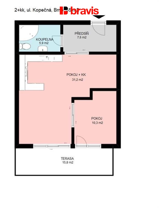 V zastoupení majitele nabízíme k dlouhodobému pronájmu nadstandardní byt o velikosti 2+kk v samém srdci Brna na prestižní adrese s nádherným výhledem na celé Brno na ulici Kopečná.