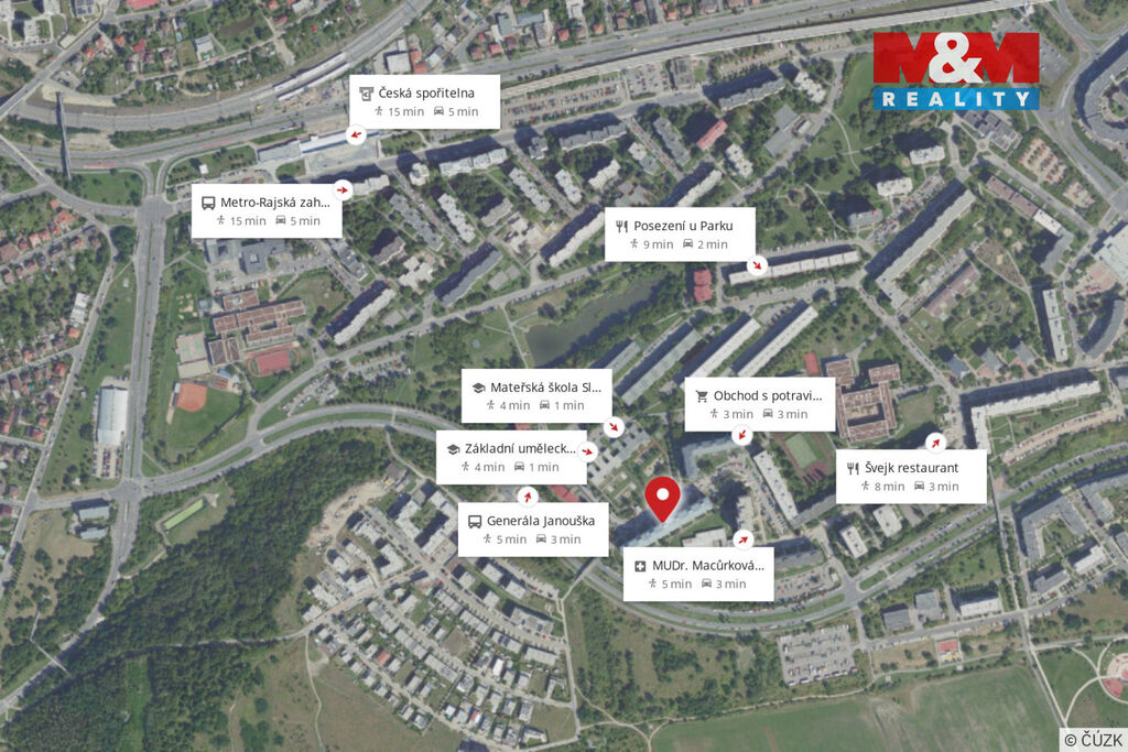 Byt je orientován do klidné části s výhledem do zeleně, což zajišťuje příjemné a nerušené bydlení. Vytápění je řešeno centrálně. Lokalita Černý Most poskytuje kompletní občanskou vybavenost – obchodní centrum, restaurace, školy, zdravotní služby – a výbornou dopravní dostupnost díky stanici metra i napojení na MHD.