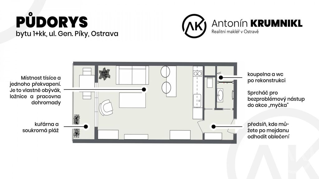 - Je to s komorou na chodbě a to u jednopokojáče fakt poznáte.