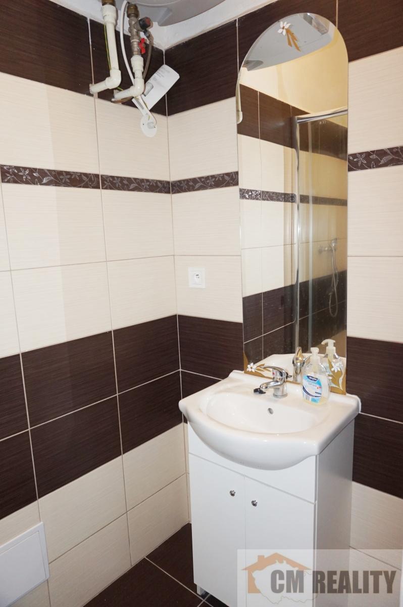 Nabízíme k dlouhodobému pronájmu byt o dispozici 2+kk, který je situován na zvýšeném 1. NP bytového domu. Užitná plocha bytu činí 42 m2. V bytě je menší koupelna se sprchovým koutem, samostatné prostorné WC s vývody pro pračku a umyvadlem. Topení je zajištěno stropními sálavými panely, ohřev vody je řešen elektrickým bojlerem. Kuchyňská linka je osazena výrobky Bosch. Byt prošel v minulosti celkovou rekonstrukcí.