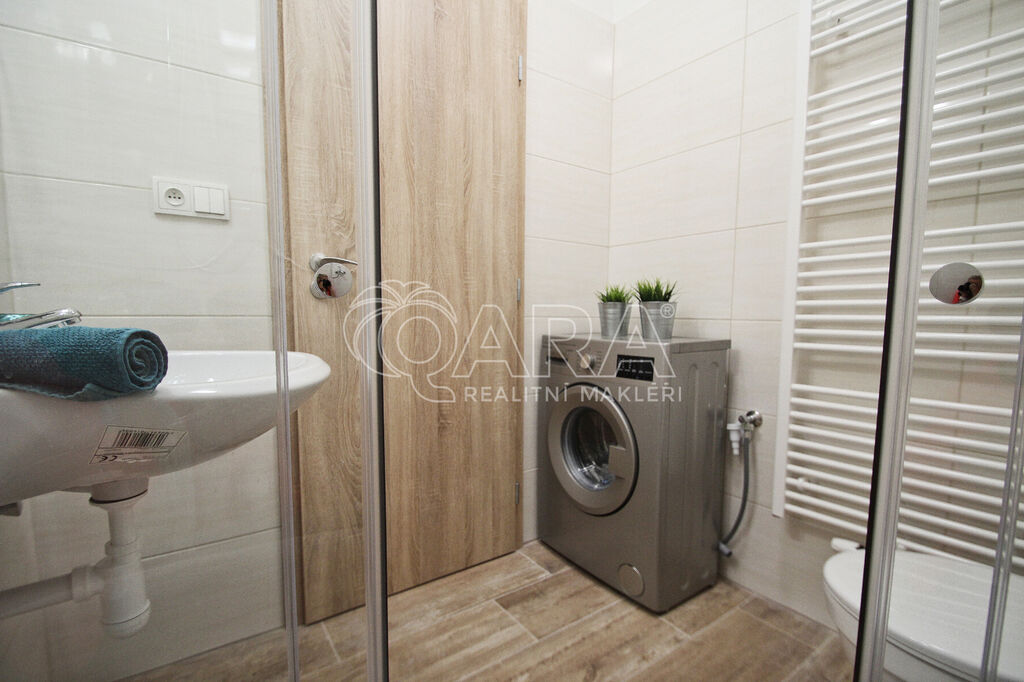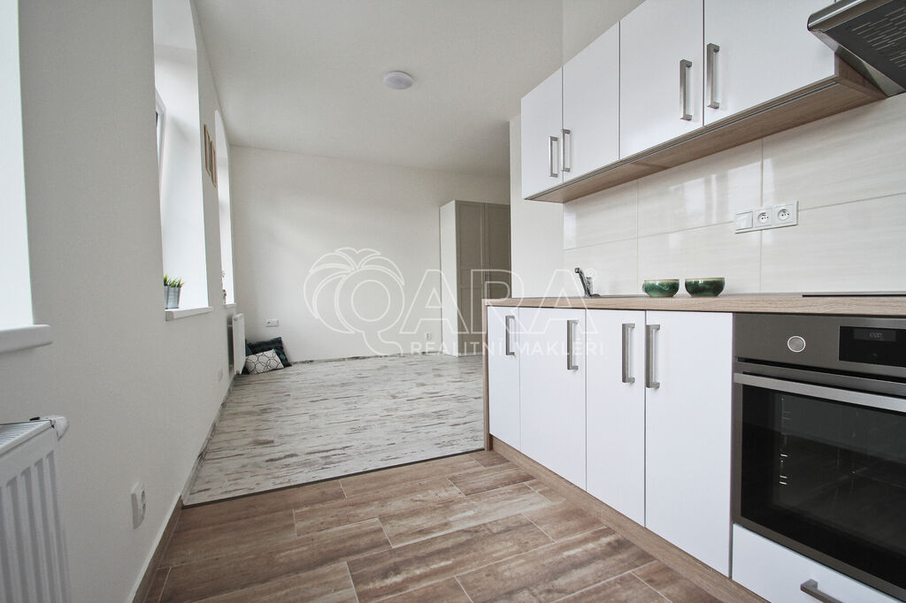 Byt je vybavený novou kuchyňskou linkou se sklokeramickou dvouplotýnkou a troubou. V koupelně je pračka.