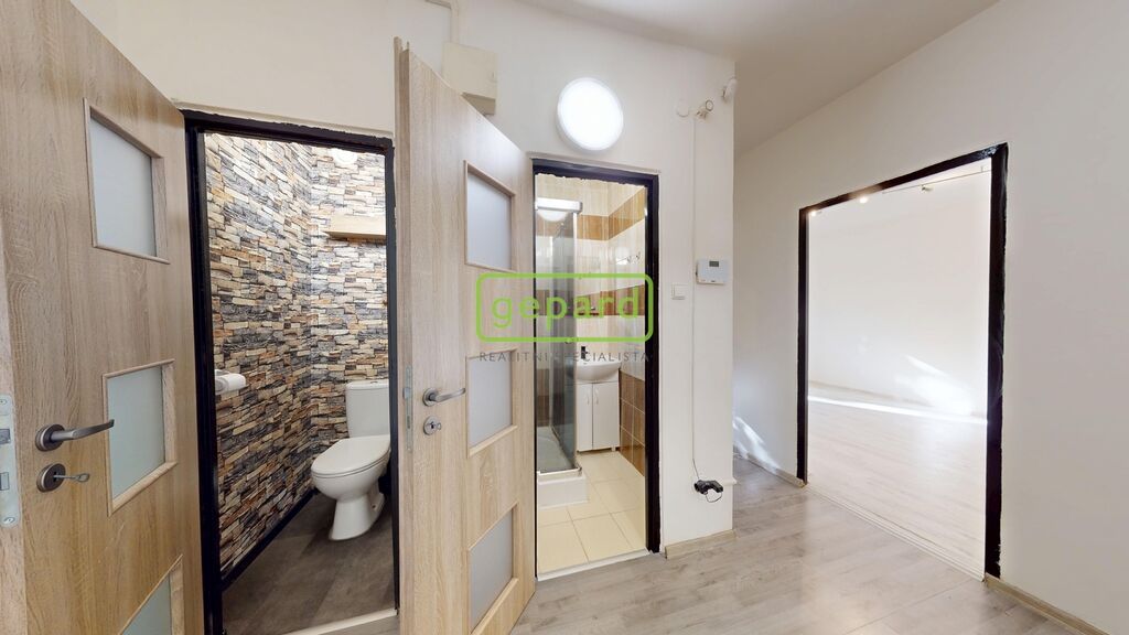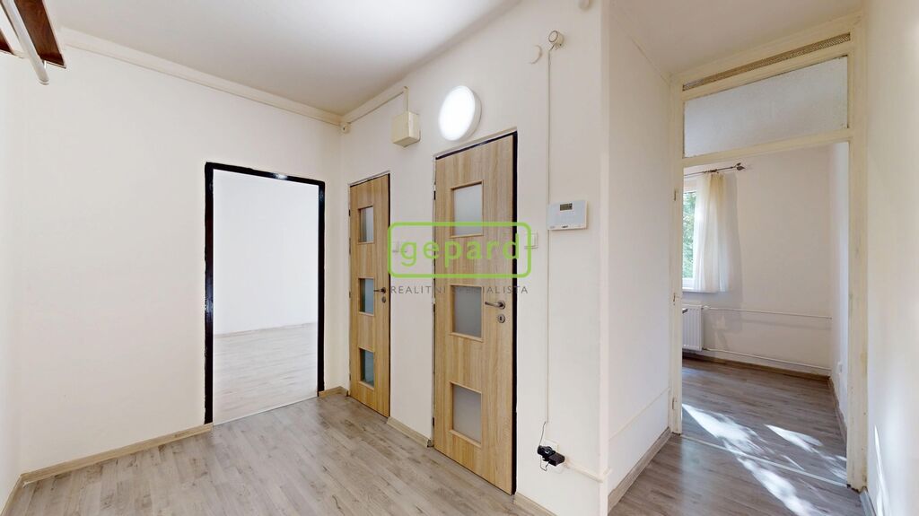 Byt disponuje dvěma prostornými pokoji (každý cca 17 m²), které nabízí dostatek místa pro komfortní obývání i soukromí. Kuchyně o velikosti 7 m² je prakticky situovaná, koupelna je vybavena sprchovým koutem a WC je oddělené. Součástí bytu je také vstupní chodba a sklepní kóje.