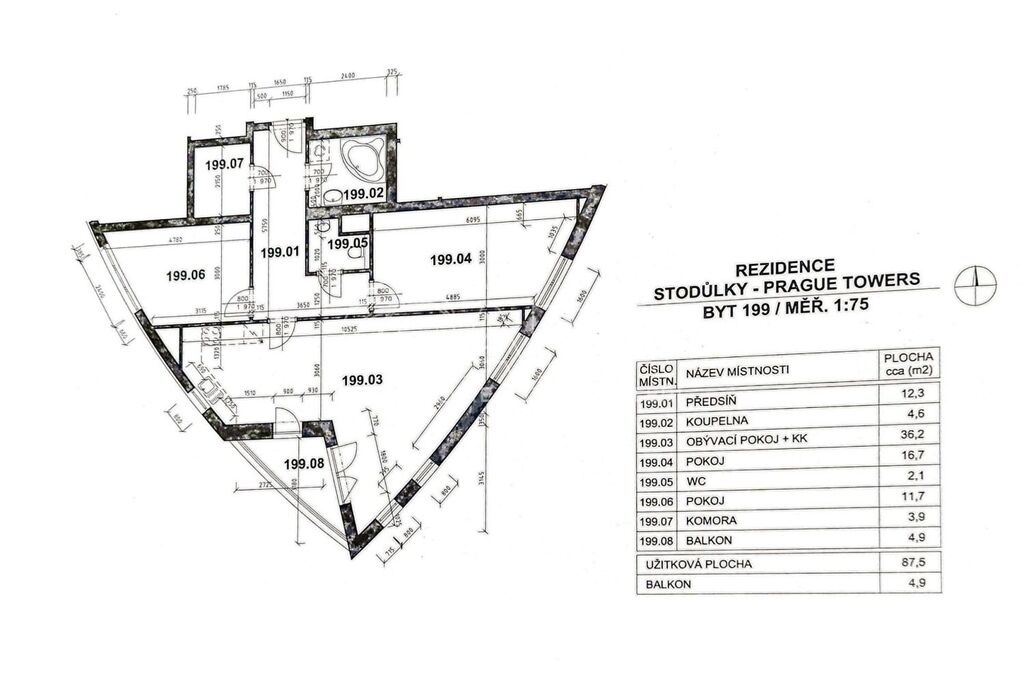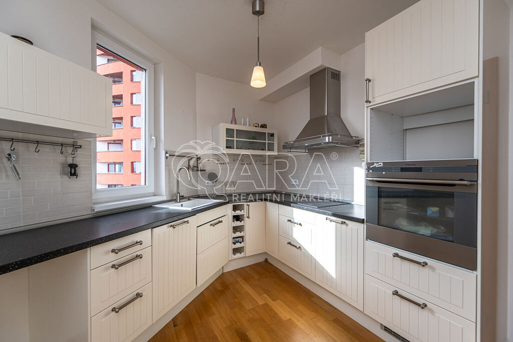 Nabízíme pronájem světlého a nezařízeného bytu 3+kk, 88 m2 + balkon, 5 m2, ul. Tlumačovská, Praha 5 - Stodůlky. Byt je ve 14 podlaží a má nádherný výhled. Orientace oken na jih, východ a západ. Byt je zařízený kuchyňskou linkou IKEA s vestavěnými spotřebiči (lednice s mrazákem, myčka, indukční varná deska, el. trouba, digestoř), v pokojích jsou skříně. V předsíni jsou skříně. V koupelna s vanou a umyvadlem, samostatné WC je s umyvadlem. K bytu patři sklep a parkovací místo v podzemních garážích. Výborná dopravní dostupnost: zastávka autobusu přímo před domem, metro Lužiny cca 7 min pěšky. Měsíční poplatky jsou 4.700,-Kč, plus elektřina a internet. Jistota ve výši 50.000,-Kč. Provize RK je 36.000,-Kč vč. DPH. Byt je volný od 15.10. Volejte a domluvte si prohlídku.