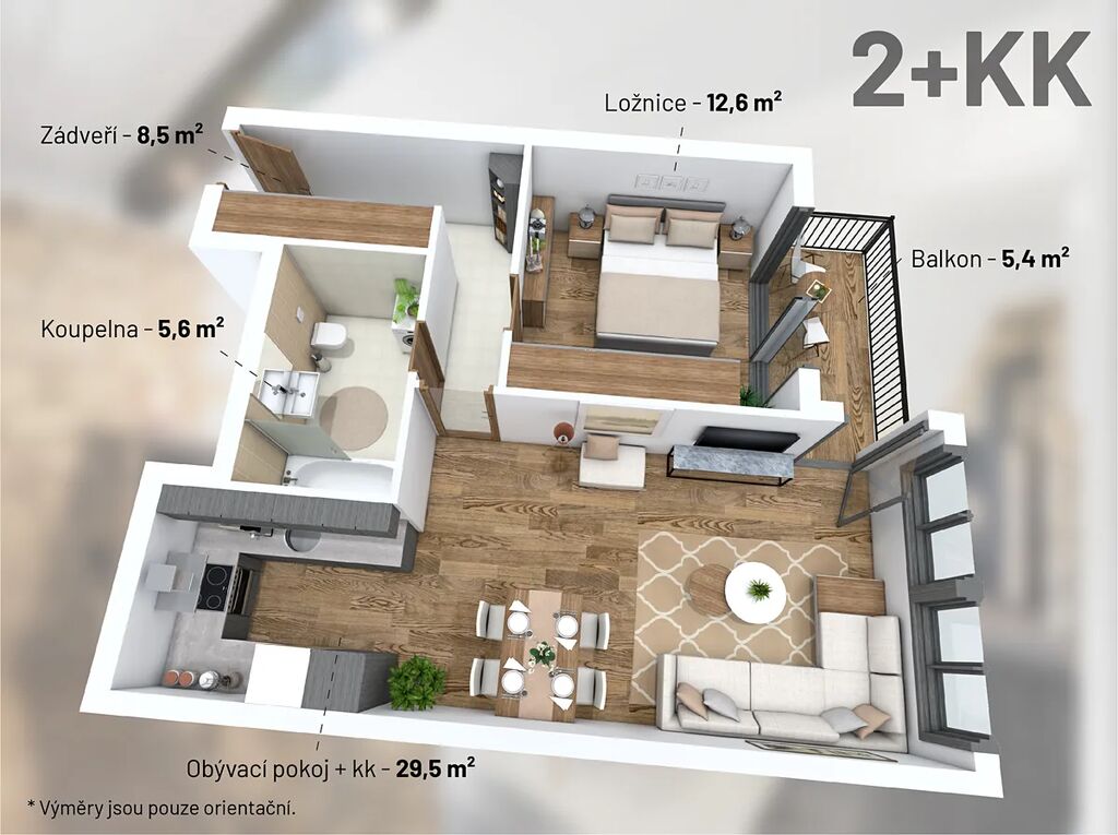 Nabízíme k pronájmu světlý byt 2+kk (56 m²) ve 3. patře , v projektu Prokopský vrch.