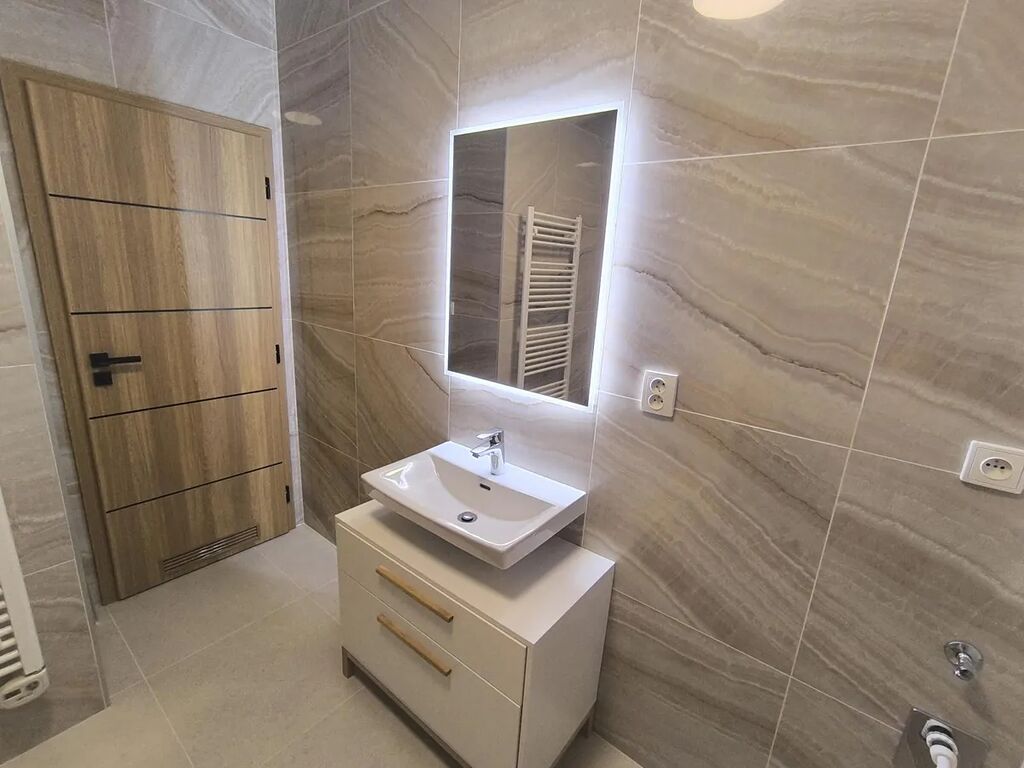 Byt je vybaven moderní kuchyňskou linkou na míru s vestavěnými spotřebiči. Součástí je:
