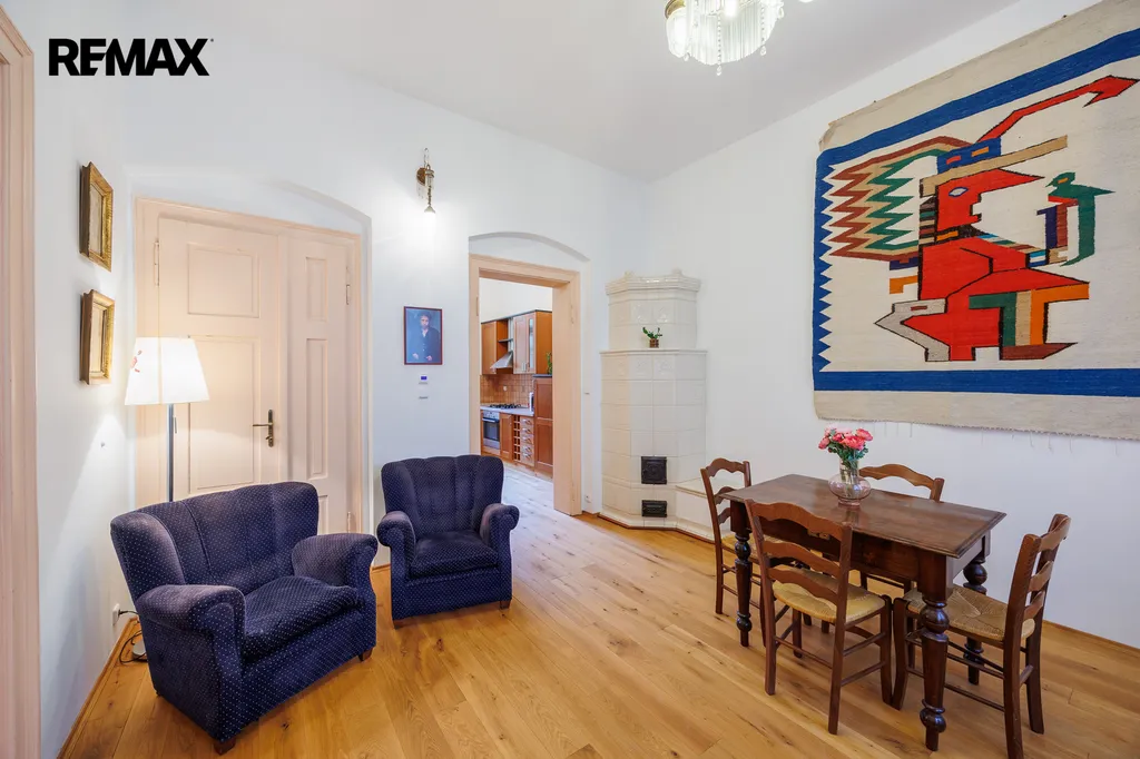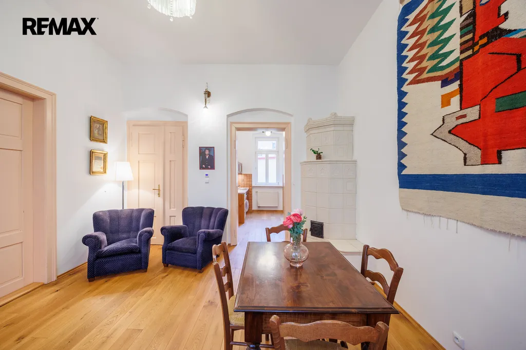 Interiér bytu vytváří harmonické spojení elegance a funkčnosti. Vstup do bytu je přes prostornou halu, která navozuje příjemnou atmosféru. V bytě je prostorý obývací pokoj s jídelnou s velkými okny, která propouštějí přirozené světlo. Zařízená kuchyň je vybavena kvalitními spotřebiči a dostatkem úložného prostoru, což ocení každý milovník vaření.