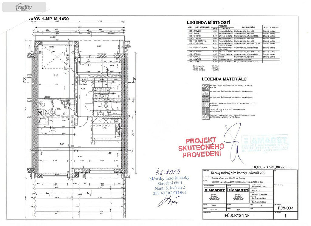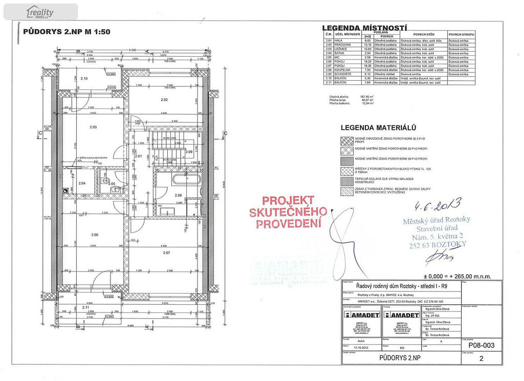Dům je velice prakticky řešen, v přízemí domu se nachází obývací pokoj s krbem, kuchyňským koutem a jídelnou s přímým vstupem na zahradu, koupelna s WC, technická místnost, komora, hala, šatna, předsíň a garáž. V patře najdete koupelnu, samostatné WC, šatnu, 4 ložnice z nichž jedna má svou vlastní šatnu.