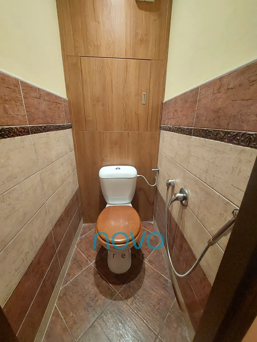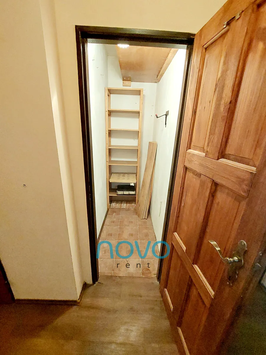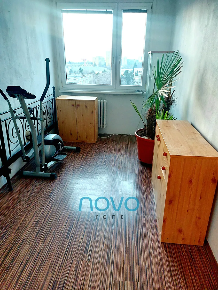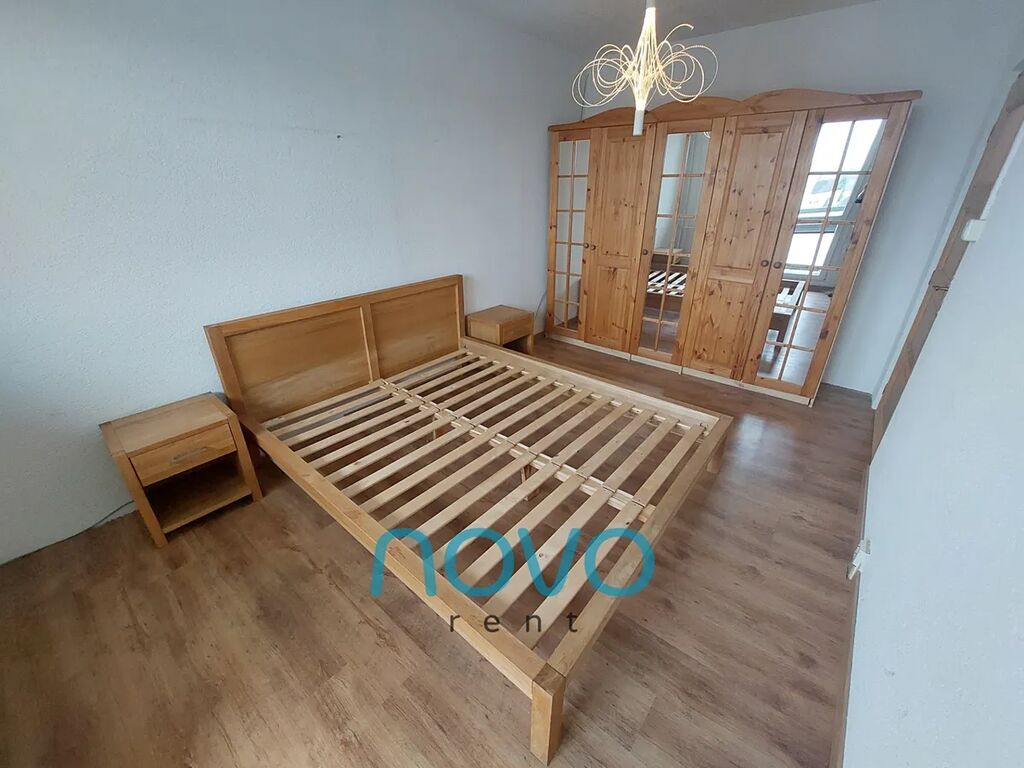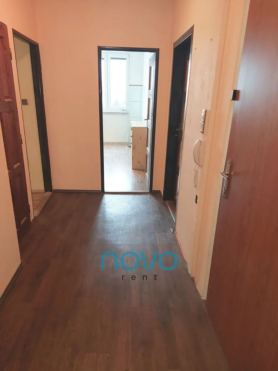 Po vstupu do bytu se nachází prostorná chodba se samostatnou toaletou, koupelnou se sprchovým koutem. Odděleně je též samostatná komora o rozloze 2x2 m. Z chodby se dostanete do 3 samostatných pokojů. První po pravé straně lze využít jako ložnici. Zde se nachází manželská postel s dvěma nočními stolky a roštem bez matrací. Oblečení si můžete uložit do prostorné šatní skříně. Z této místnosti je též vstup na balkón o velikosti 6 m2. Místnost sousedící s ložnicí můžete využívat jako pracovnu či samostatný pokoj. Tento pokoj vybavený není.