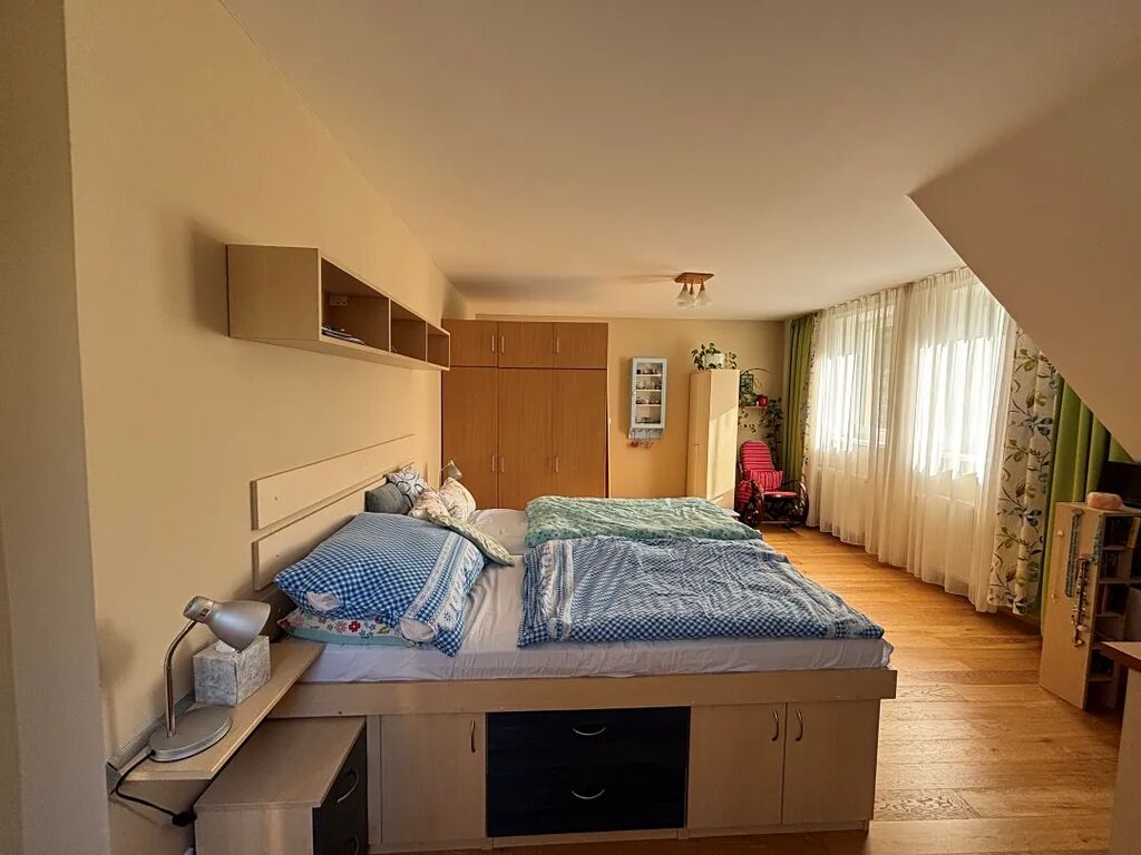 2.NP: 2x ložnice, koupelna s vanou, WC a bidetem, vstup na půdu (možnost rozšíření stávající dispozice domu).