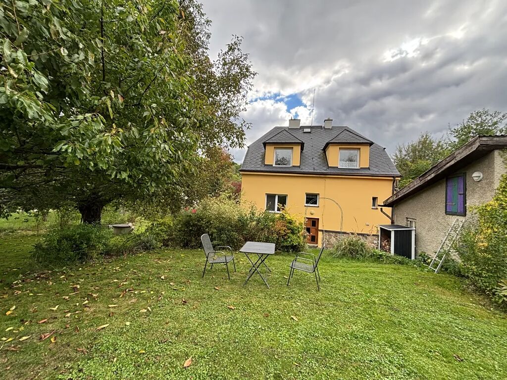Za domem je umístěna zděná garáž, která v současné době slouží hospodářský přístavek. Nemovitost nabízí velkorysý a rozmanitý prostor.