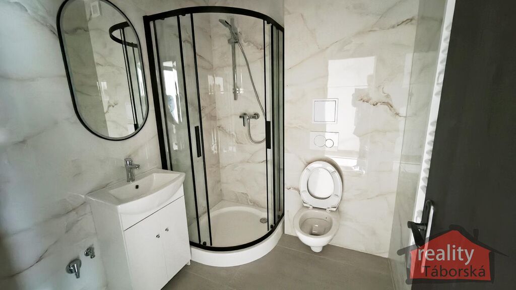 V obývacím pokoji s kuchyňským koutem je laminátová plovoucí podlaha, v koupelně a na chodbě keramická dlažba. V koupelně je sprchový kout, umyvadlo, toaleta a prostor na pračku s připravenými vývody na vodu a odpad. Provedení ve standardu, není potřeba dokončovacích prací. V bytě jsou plastová tříkomorová okna a bezpečnostní vstupní dveře, které jsou uvnitř foliované. Vchodové dveře do domu mají bezpečnostní zámek ovladatelný z mobilního telefonu.