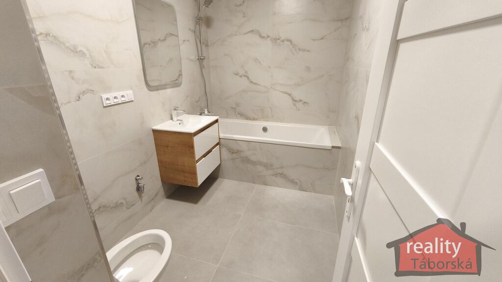 V obývacím pokoji s kuchyňským koutem a ložnici je laminátová plovoucí podlaha, v koupelně keramická dlažba. V koupelně je vana, umyvadlo, toaleta a prostor na pračku s připravenými vývody na vodu a odpad. Provedení ve standardu, není potřeba dokončovacích prací. V bytě jsou plastová tříkomorová okna a bezpečnostní vstupní dveře, které jsou uvnitř foliované. Vchodové dveře do domu mají bezpečnostní zámek ovladatelný z mobilního telefonu.