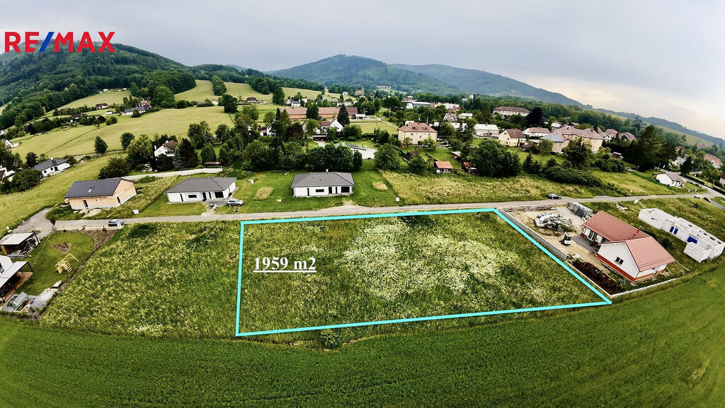 Pozemek o současné výměře 1959 m² může být prodán jako celek nebo může být rozdělen na dvě poloviny, tj. 2x 979,5 m². Pozemek je určen k výstavbě RD, je rovinatý, obdélníkového tvaru, zatím o rozměrech 60,5 x 32,4 m².