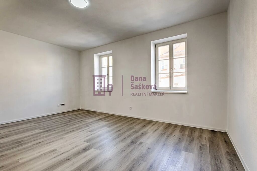 Pronájem bytu o dispozici 1+kk v prvním patře bytového domu na adrese náměstí Míru, Jindřichův Hradec.
