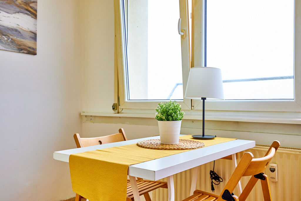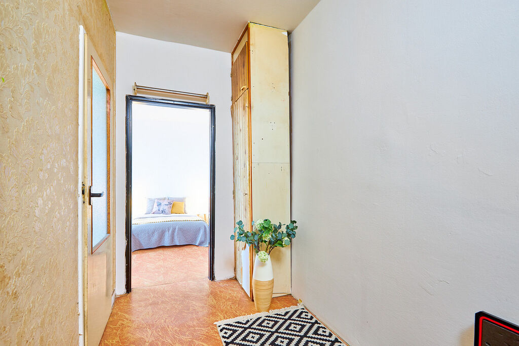 Byt je v původním stavu a tak poskytuje ideální příležitost k rekonstrukci podle vlastních představ. Dispozice zahrnuje vstupní předsíň, kuchyň s prostorem pro jídelní kout, prostorný pokoj, koupelnu a samostatné WC. Díky umístění v osmém nadzemním podlaží je byt světlý a nabízí příjemný výhled do okolí.