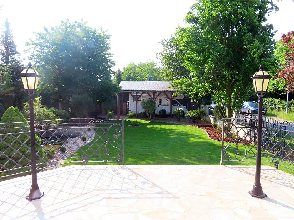 Vila je situována v zástavbě rodinných domů a vil na rohovém pozemku o celkové ploše 886 m2. Zahrada u domu je udržovaná, osázená okrasnými dřevina s klidovou zónou s jezírkem. Pozemek je opatřen automatickou závlahou.