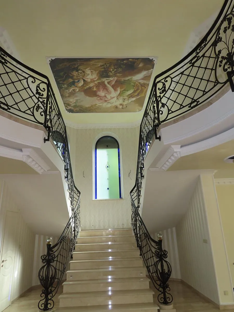 Vila je čtyřpodlažní o celkové užitné ploše 600 m2. Při vstupu vás osloví velká obytná hala s mramorovou podlahou, vysokými stropy, impozantním schodištěm a krásnými nástěnnými malbami. V přízemí se dále nachází příprava na kuch. linku, výstup na terasu a soc. zázemí.