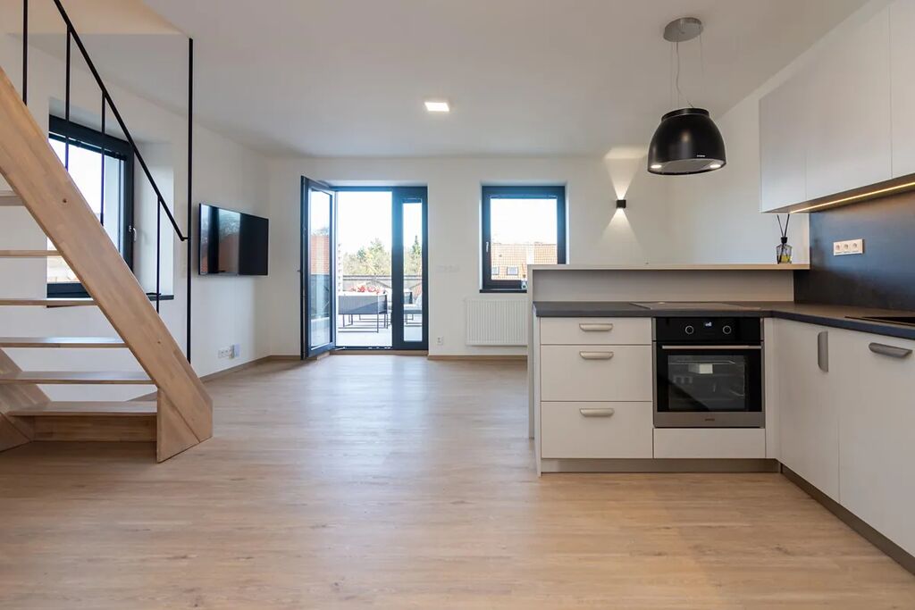K pronájmu prostorný a moderně vybavený mezonet 2+kk v lukrativní lokalitě Průhonice. Byt se nachází v 1. patře kompletně zrekonstruovaného domu a disponuje vlastní terasou s absolutním soukromím a výhledem na uzavřený dvůr s fitness a wellness.
