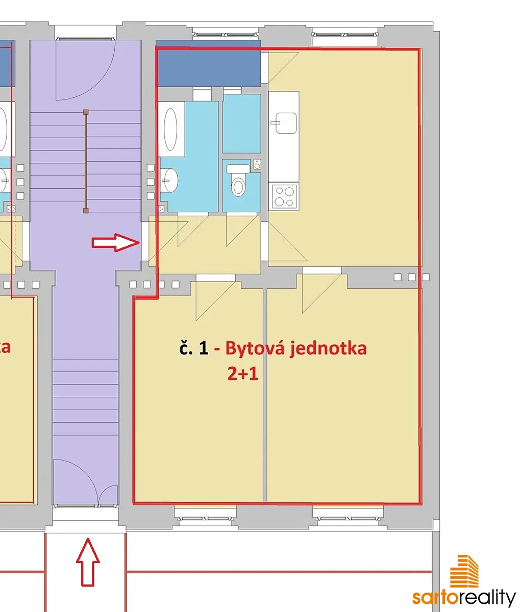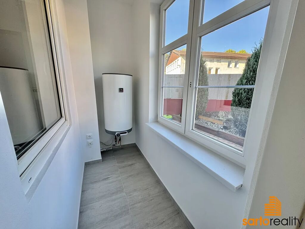 Tento byt, o velikosti 62,3 m2, je situovaný do zvýšeného 1.NP cihlového domu. Skládá se ze vstupní chodby, dvou pokojů, velké obytné kuchyně, koupelny se sprchovým koutem, vanou a WC a komory. Byt prošel v nedávné době kompletní rekonstrukcí - plastová okna, podlahy, el.rozvody, SDK podhledy, nová kuchňská linka, koupelna aj. Byt má samostatné měření vody i el. proudu. Ohřev vody el.bojlerem, vytápění el.přímotopy. Ke společnému užívání je možné využít zahradu za domem, pro odpočinek po práci, grilování nebo posezení s přáteli.