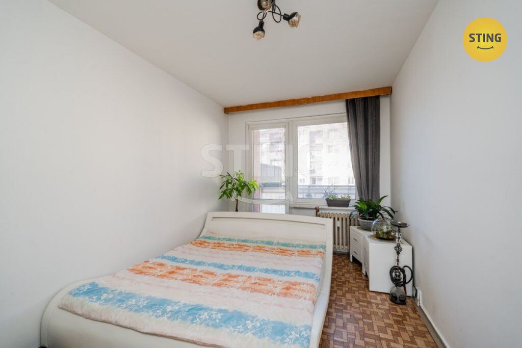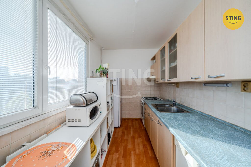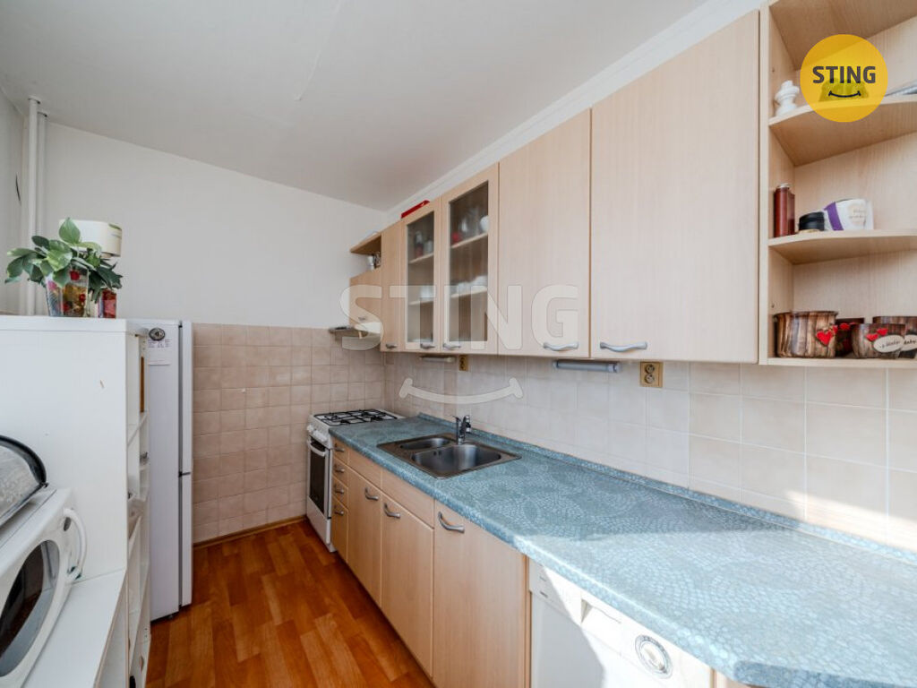 Jednotka je částečně zrekonstruována a velmi dobře dispozičně řešena. Prostorný obývací pokoj je průchozí do ložnice se vstupem na lodžii, což zajišťuje dostatek denního světla. Třetí pokoj je samostatný, v chodbě pak naleznete praktické vestavné skříně pro úložné účely. Součástí předsíně je na míru vyrobená odkládací stěna se skříní a botníkem. Kuchyně je vybavena zánovní kuchyňskou linkou a plynovým sporákem s troubou. Koupelna disponuje vanou, toaleta je oddělená.