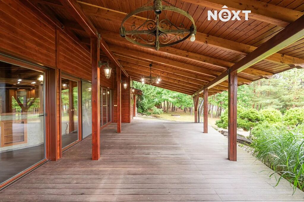Jedním z hlavních lákadel je prostorná terasa podél spodního patra domu, odkud se otevírá dechberoucí výhled do okolní krajiny. Dřevěná okna i prosklené části domu jsou orientovány tak, aby co nejvíce využily okolní výhledy a přirozené světlo. Celý interiér působí vzdušně a propojení s přírodou je cítit doslova na každém kroku.