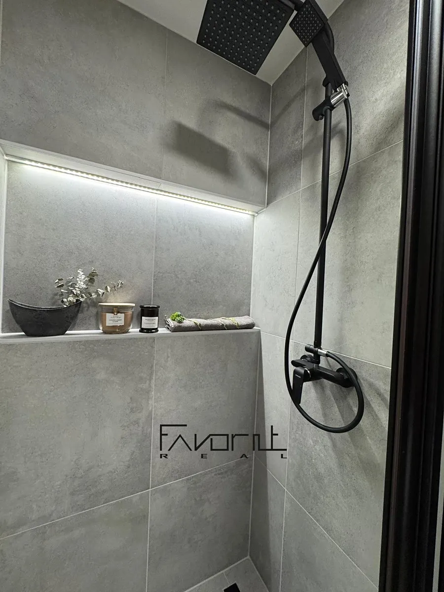 • Koupelna s podomítkovou sprchovou baterií, podsvícenou nikou a závěsným WC
