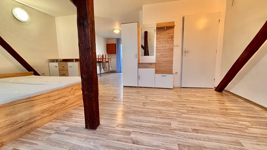 Pronájem prostorné garsonky v domě se třemi byty. Ve všech bytech jsou nájemníci. Byt je starší, ale udržovaný. V bytě je bojler pro ohřev vody, pračka, lednička a nábytek. Koupelna se sprchovým koutem. WC je mimo byt na chodbě o pár schodů níže, je pouze pro tento byt. Kauce dva nájmy. Zálohy na vodu, plyn a elektřinu jsou 3800 Kč. Pouze pro nekuřáky bez zvířat. Výborná dostupnost do centra Brna.