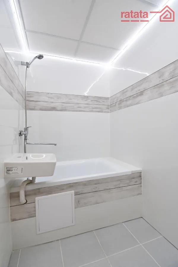 Je zde nová kuchyňská linka, el. sporák, vana s umyvadlem a WC. Na podlahách je položeno lino a dlažba. Byt je volný k nastěhování IHNED.