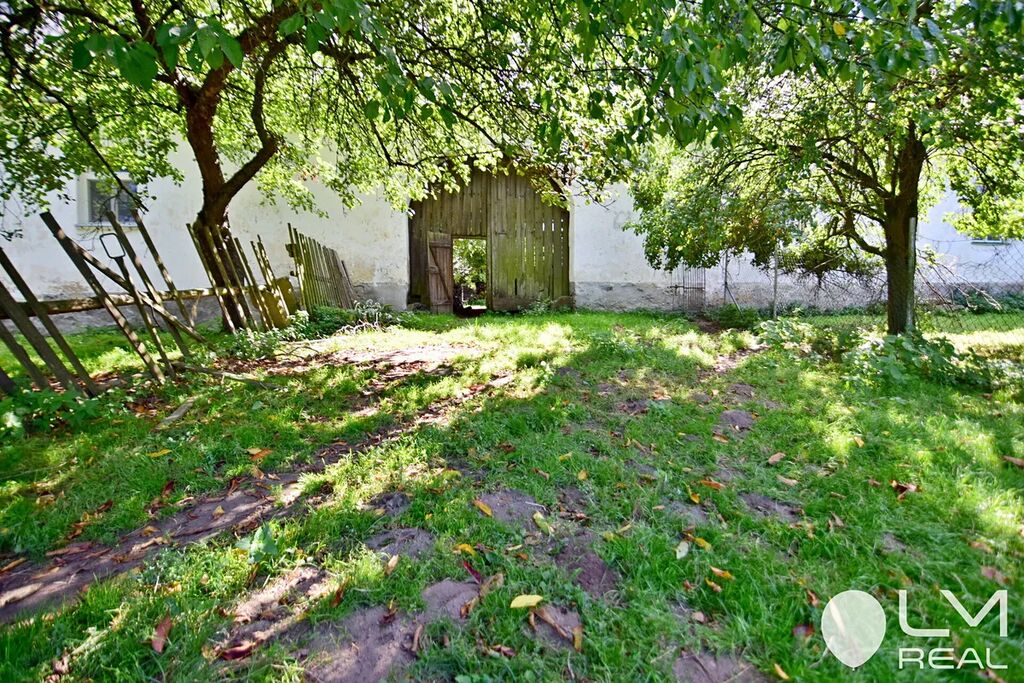 Dům má zastavěnou plochu 210 m2 a stojí na pozemku 720 m2, z toho zahrada před domem a za domem má plochu 510 m2. S domem také koupíte pozemek o výměře 23 m2 a podíl ID 1/16 z celkové výměry pozemku 500m2 (cesta k domu a za domem), a podíl ID1/4 pozemku z celkové výměry 2513 m2, kde je studna s vodovodem a památným dubem.