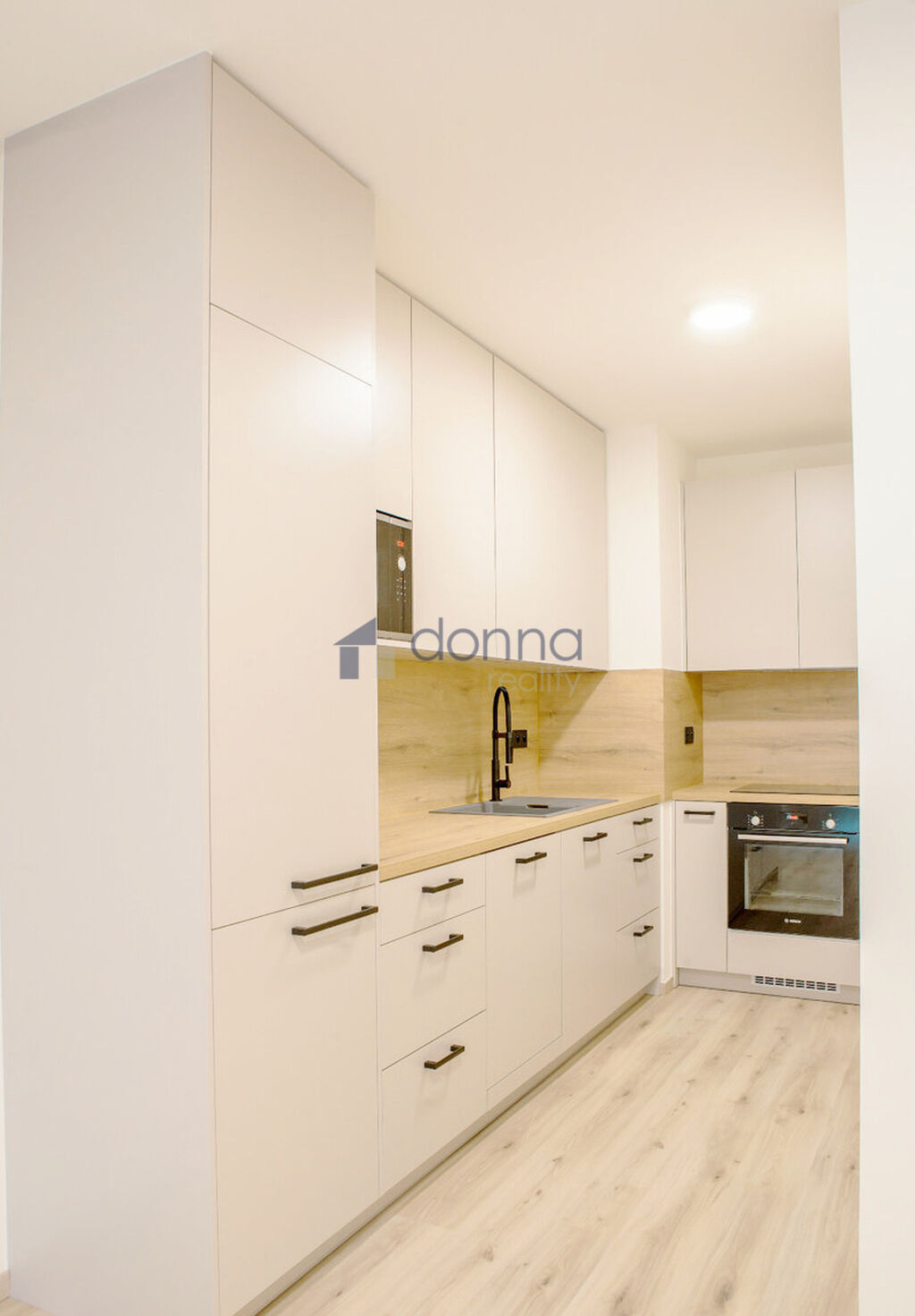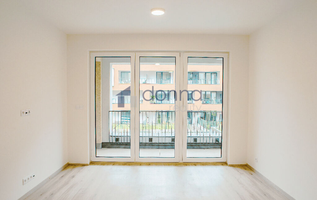 K dispozici je nová kuchyňská linka včetně spotřebičů (varná deska, trouba, digestoř, lednice, myčka a mikrovlnná trouba), jinak bez nábytku.