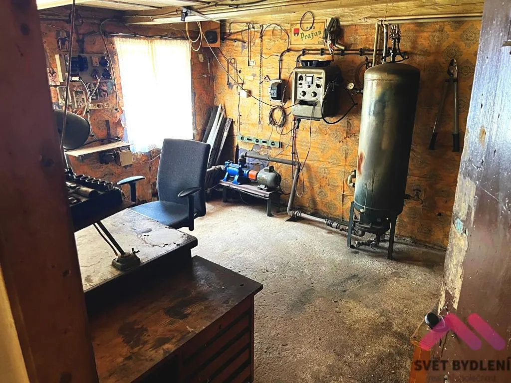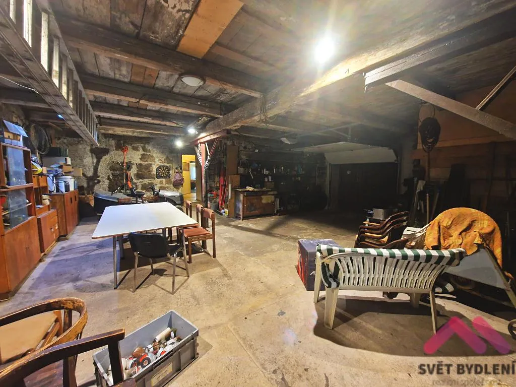 Velká garáž s možností dalšího využití (dílna, sklad, parkování).