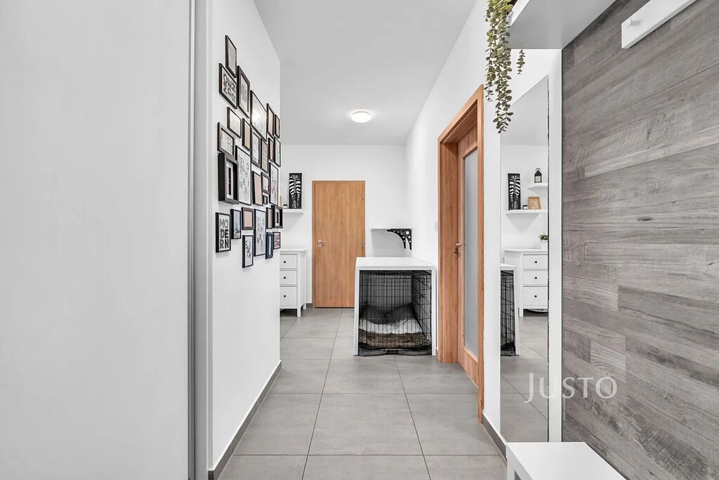 Co se domu týče, ten byl kolaudován v červnu roku 2020. V domě je výtah, fajn sousedi a SVJ je řádně spravováno.