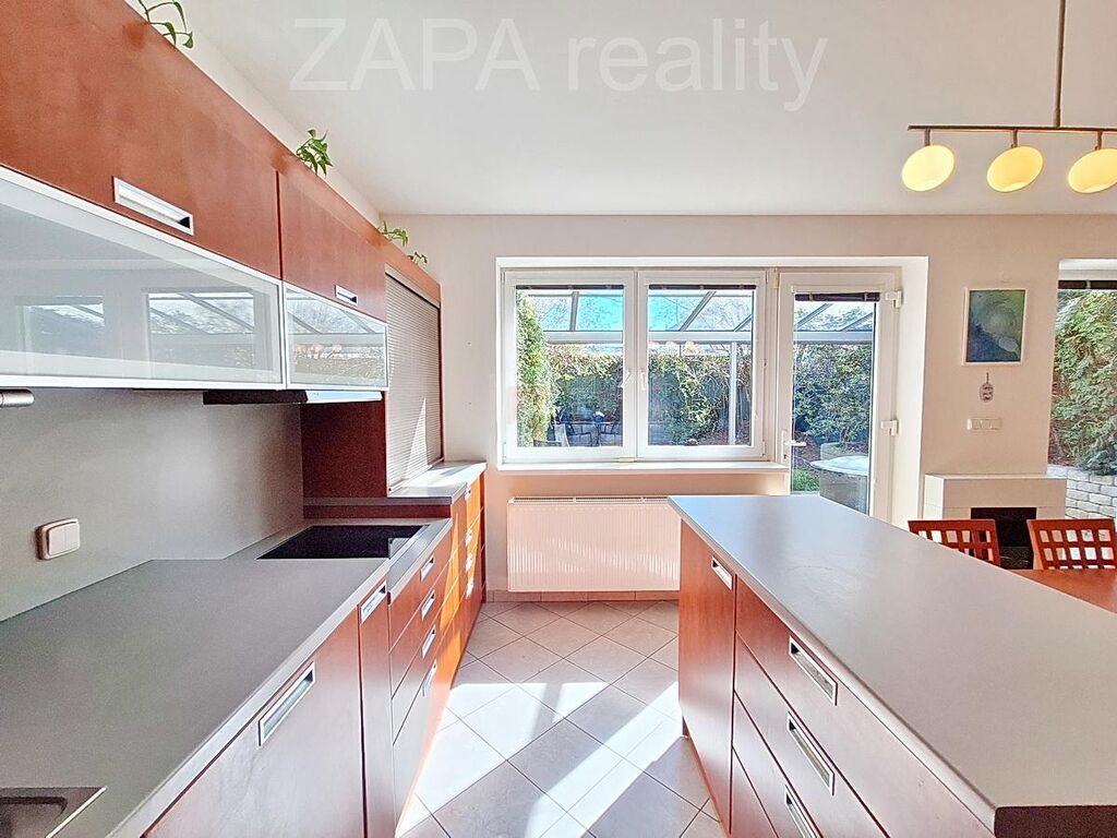 Vybavení: kuch. linka s velkou spíží, vestavěnné spotřebiče (lednice, myčka, el. varná deska, digestoř, el. trouba a mikrovlnná trouba), centrální vysavač, optický kabel ve všech místnostech, zaabezpečovací systém, domácí telefon, biokrb, ve všech oknech bezpečnostní skla a stínící žaluzie, dálkové ovládání garážových a vjezdových vrat, zásuvka 400V v garáži