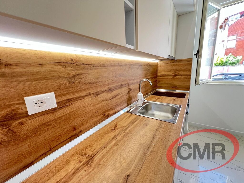 Nové rekonstruovaný apartmán 3+kk je umístěn je přímo u moře v přízemí bytového domu se samostatným vstupem, což zajišťuje snadný přístup. Apartmán je navržen s důrazem na pohodlí a moderní životní styl. Přes balkón je vstup prostorného obývacího pokoje, který je dokonale propojen s plně vybavenou kuchyňskou linkou. Z obývacího pokoje je vstup do obou ložnic, přičemž jedna je vybavena manželskou postelí a druhá samostatnými patrovými postelemi - palandou. Koupelna je vybavena moderním sprchovým koutem, umyvadlem s toaletní skříní a WC s bidetovou sprchou, což dodává apartmánu další úroveň komfortu. Lokalita je ideální pro ty, kteří hledají klidný odpočinek u moře, ale zároveň chtějí být blízko všem potřebným službám a zábavě, kterou město nabízí.