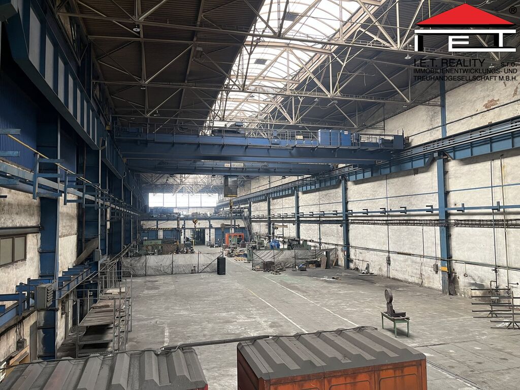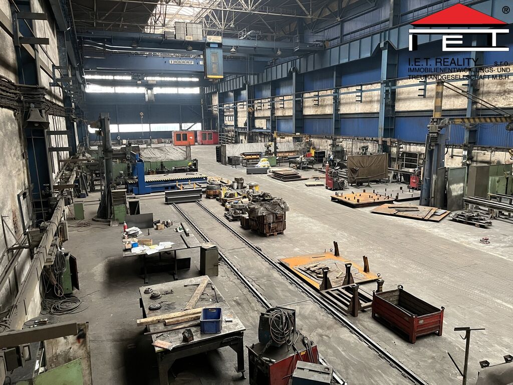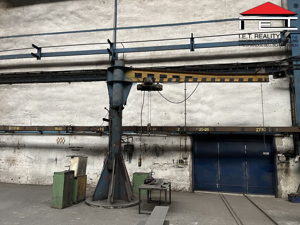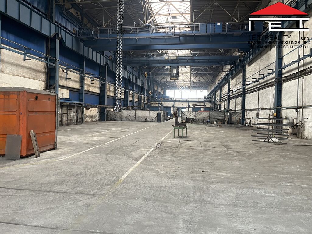 K pronájmu nabízíme výrobní/skladovou halu o ploše 1 992 m² s vlastními vraty 5 × 5 m, dvěma mostovými jeřáby (12,5 t a 5 t) a třemi sloupovými jeřáby. Hala má nosnost podlahy 7 000 kg/m², výšku jeřábů 11 m a je možné ji vytápět.
