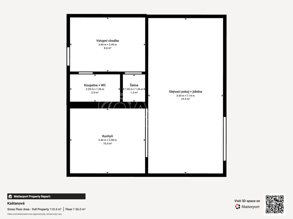 Přesné rozměry jednotlivých místností najdete v přiloženém půdorysu ve fotogalerii a projít si nemovitost můžete i ve 3D virtuální prohlídce, která je také součástí inzerce.